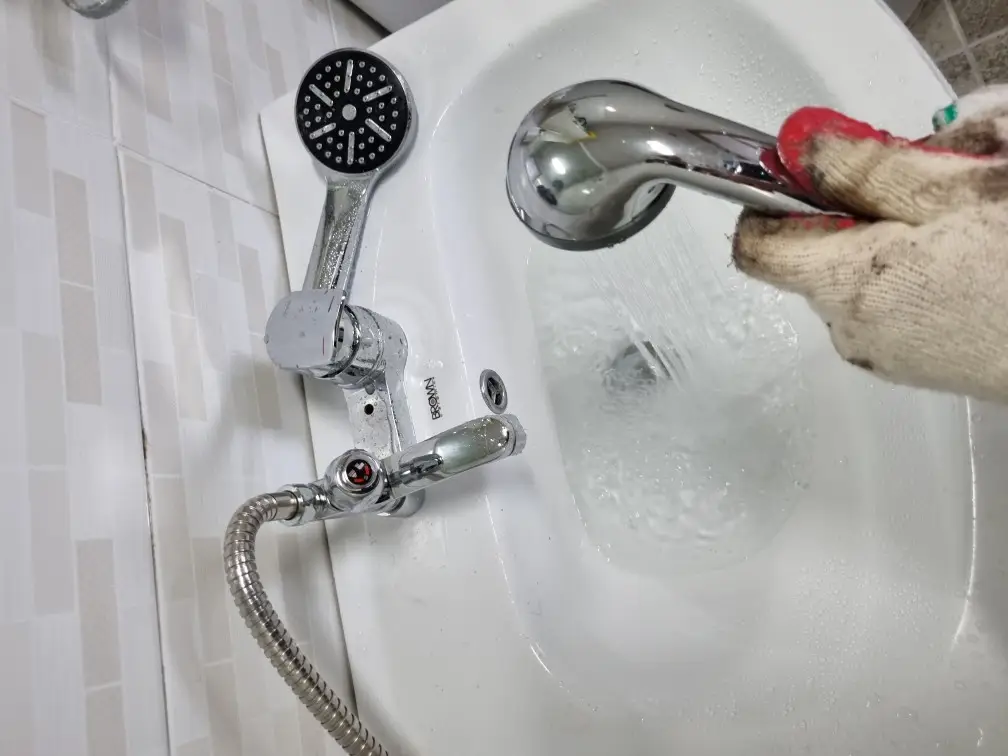 설치가 끝난 후에는 온수와 냉수 모두 정상적으로 잘 나오는지, 샤워기와 세면대 전환이 부드럽게 되는지 꼼꼼하게 점검했습니다. 고객님께서 직접 사용해보시고 “이제는 물도 전혀 새지 않고, 전환도 한 번에 잘 된다”며 매우 만족해하셨습니다. 특히, 작업 후 세면대와 주변까지 깨끗하게 정리해드리니 “처음보다 더 깔끔해진 것 같다”며 웃으시더라고요. ㅎㅎ